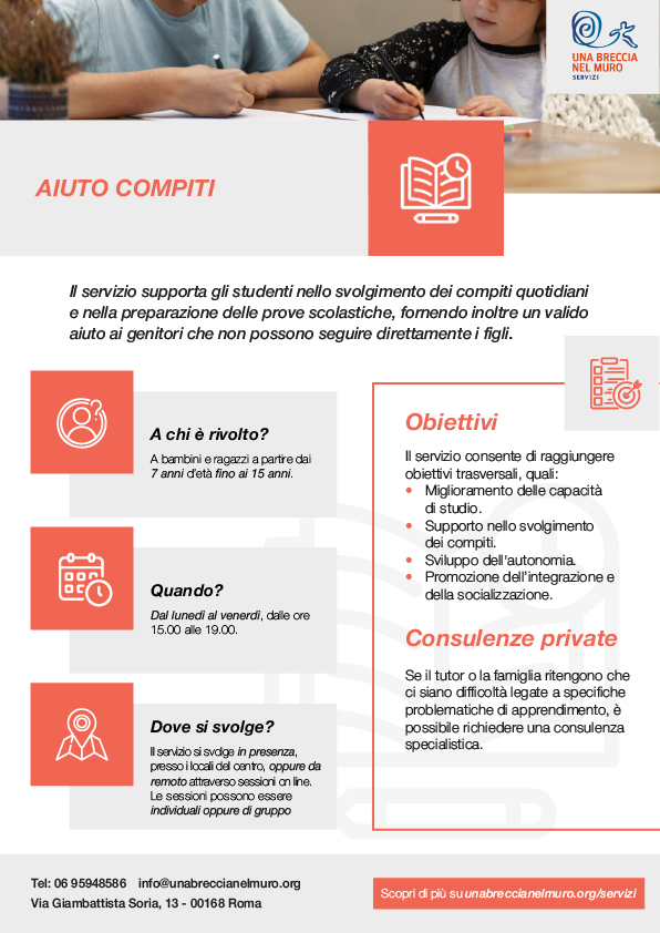 L’aiuto compiti è un servizio di supporto all’apprendimento per studenti delle scuole elementari, medie e superiori.
